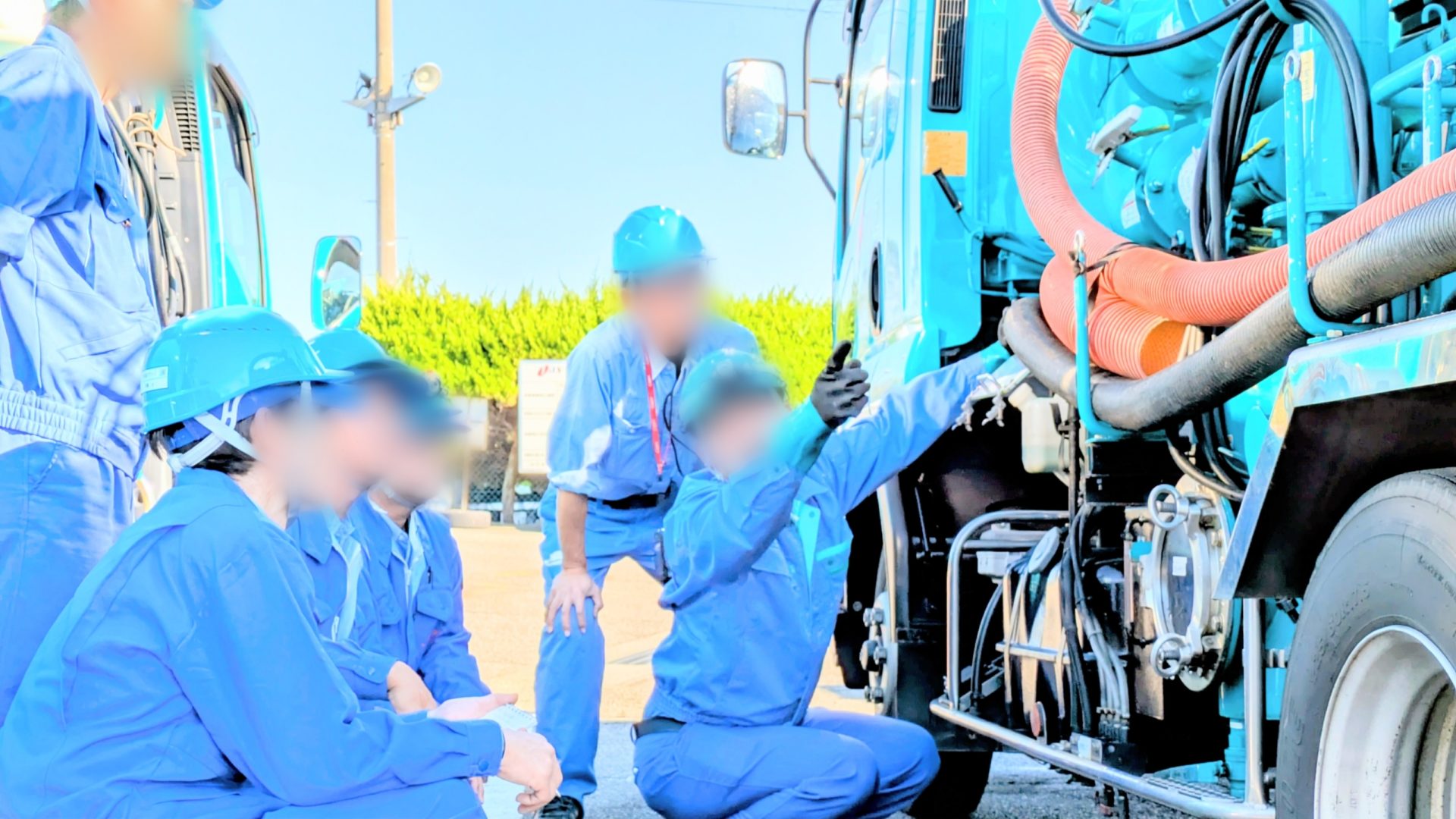 高圧洗浄車と強力吸引車の操作研修を実施いたしました。これらの車両は使用頻度がそれほど多くないため、この機会に操作方法などを再確認することを目的としました。