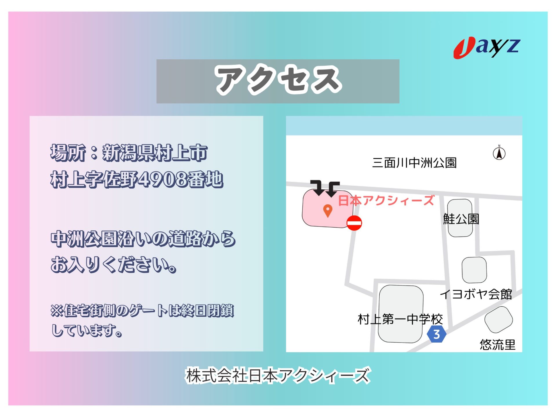 場所: 新潟県村上市村上字佐野4908番地 日本アクシィーズ