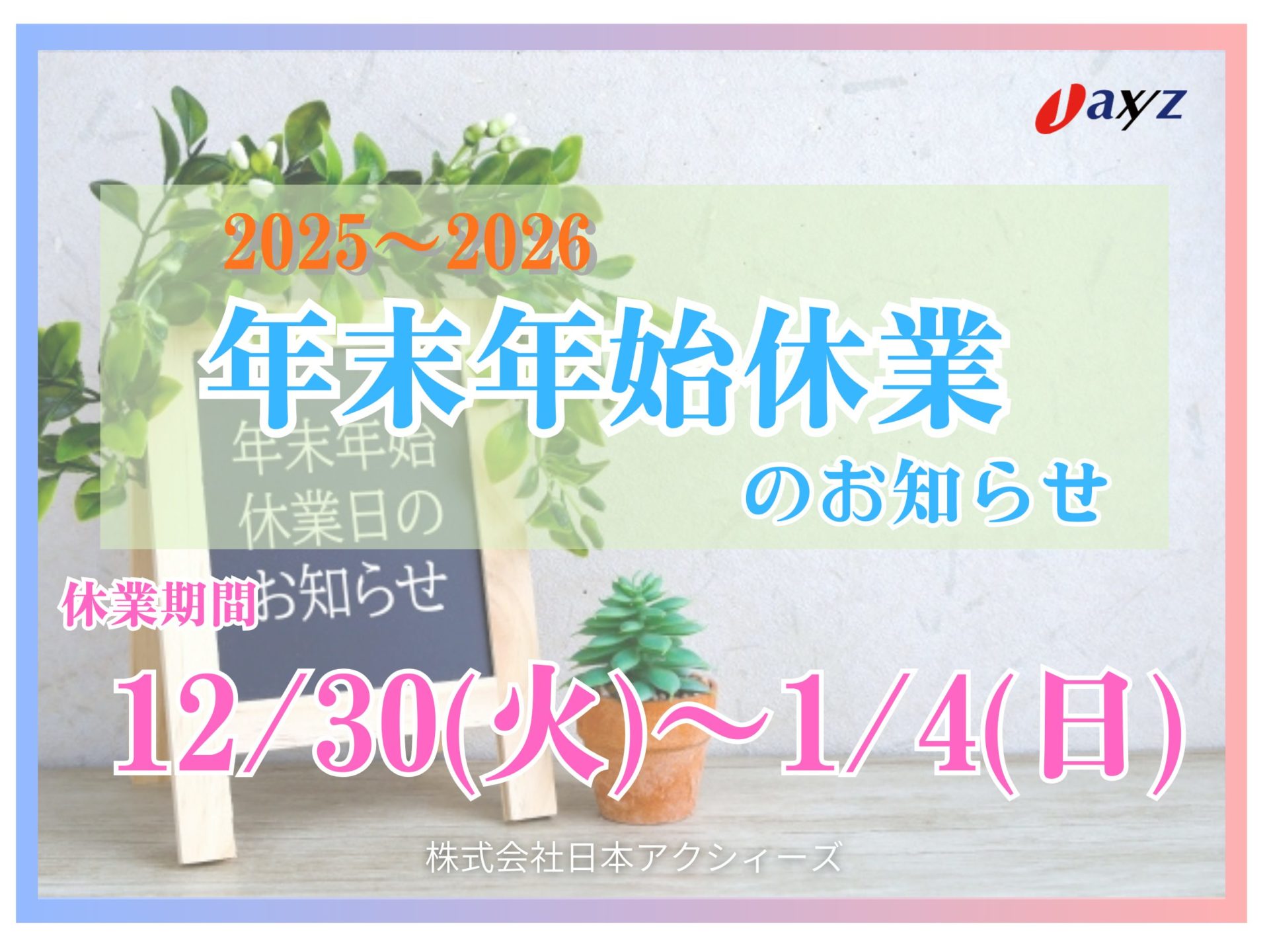 年末年始休業(2025~2026)のお知らせ