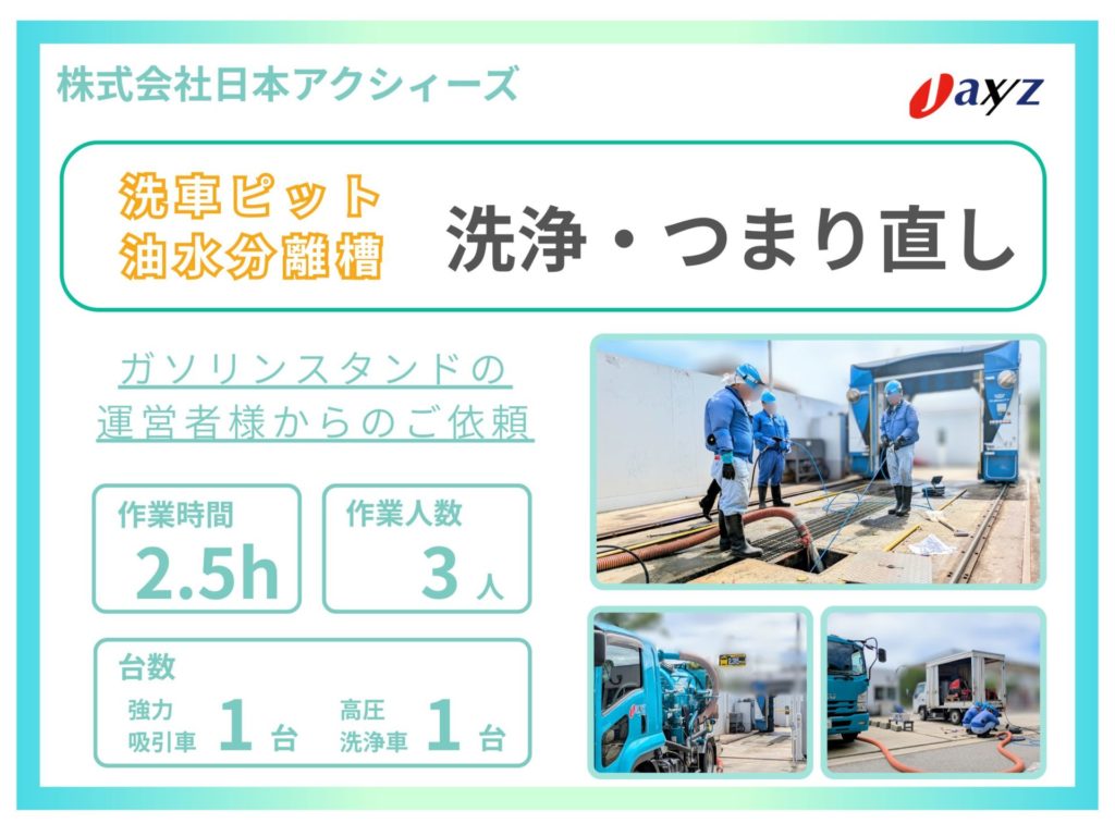 実績紹介実績紹介:ガソリンスタンドの洗車ピットと油水分離槽の洗浄・つまり直し